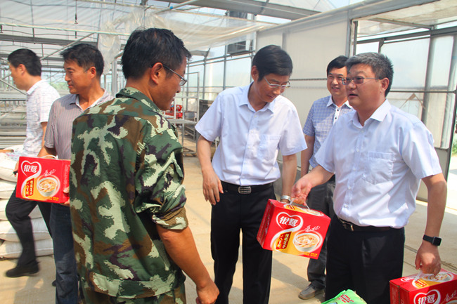 7月20日上午,集團(tuán)副總經(jīng)理張其海、總會計師匡友本來我公司大新農(nóng)場、生態(tài)種養(yǎng)中心走訪慰問拼搏在農(nóng)業(yè)種養(yǎng)一線的基層職工,為他們送上綠豆、白糖、牛奶及八寶粥等防暑降溫品。投資公司董事長、黨委書記胡傳法、黨委副書記、副總經(jīng)理史祥平、副總經(jīng)理周緒祥陪同慰問。