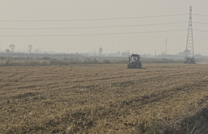 近日,在大新農(nóng)場的農(nóng)田里,機聲隆隆,幾臺大型農(nóng)機拖著旋轉(zhuǎn)的滾輪正在作業(yè),切碎土塊,并將埋在地表下的水稻根茬切碎,疏松土壤,為接下來的冬小麥播種做準備。(王璐)