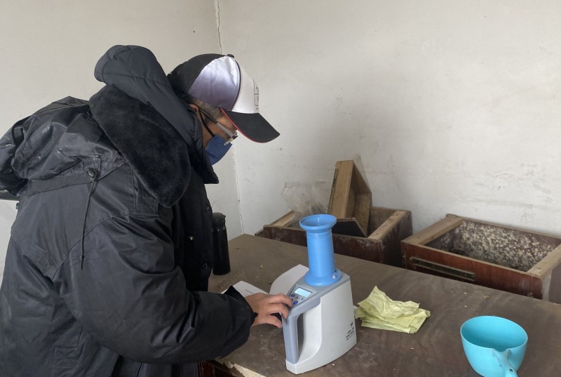 為確保糧食存儲安全和保障種植效益,大新農(nóng)場曬場測量人員深入曬場對種植戶糧食進(jìn)行跟蹤測水作業(yè),為糧食安全儲存打造堅實屏障。(王璐)