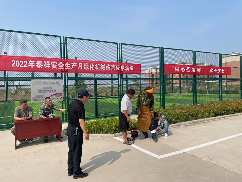 為了有效應(yīng)對(duì)突發(fā)事件的處置能力,提高員工安全防范意識(shí)。6月22日下午,在泰祥門(mén)前小廣場(chǎng)舉行泰祥綠化機(jī)械傷害應(yīng)急演練。