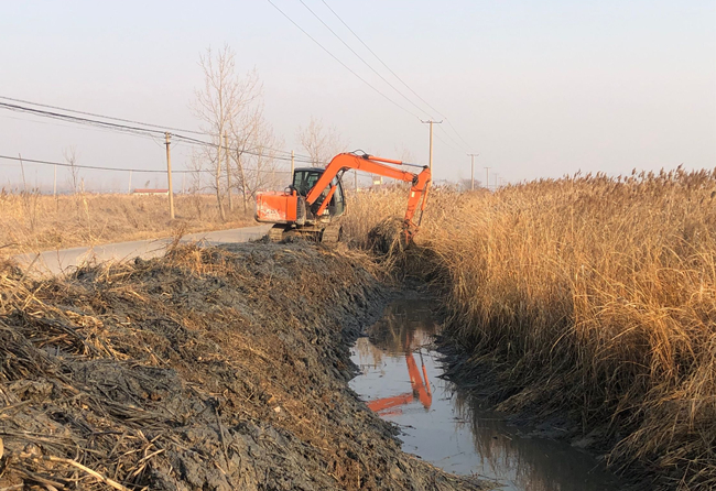 “抓緊時間,爭取近期把這段水渠清理干凈?!币淮笤纾S沙分場進(jìn)水渠道開始忙碌起來,挖掘機(jī)正在進(jìn)行清淤施工。