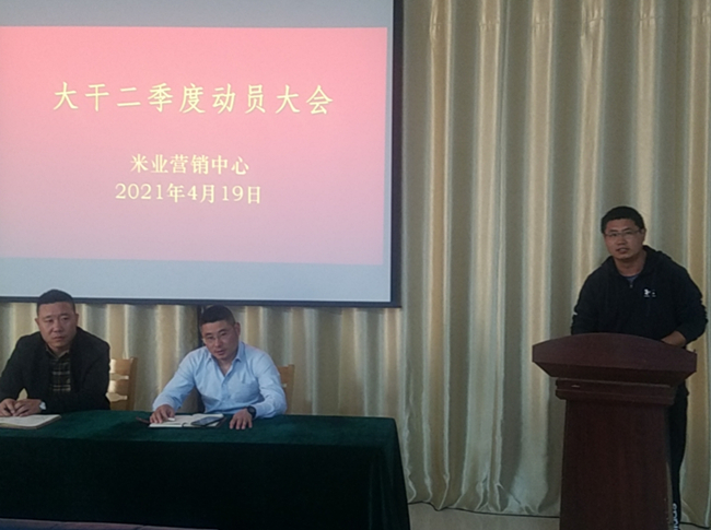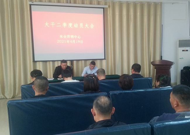 ? ? ? ?4月19日,米業(yè)營(yíng)銷中心召開大干二季度動(dòng)員大會(huì),進(jìn)一步貫徹落實(shí)投資公司二屆一次職代會(huì)暨第二次工代會(huì)會(huì)議精神,結(jié)合“崗位建新功、創(chuàng)效爭(zhēng)一流”大干二季度勞動(dòng)競(jìng)賽,規(guī)劃部署米業(yè)全年工作,分解全年銷售任務(wù),以分解量化的季度指標(biāo),以月保季、以季保年,緊扣工作目標(biāo),明確責(zé)任分工,凝心聚力,共謀發(fā)展。