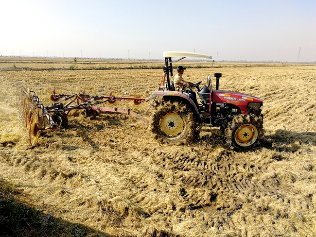 為有效防止秸稈焚燒形成的污染,保護生態(tài)環(huán)境,促進秸稈綜合利用。日前,大新農場在水稻收割的同時積極聯系秸稈回收廠家,對水稻秸稈進行回收打包。稻田里,帶有八個圓形大齒輪的水稻摟草機正在工作,機器行駛在收割完的稻田中,將聚攏后的秸稈進行打捆作業(yè),所過之處水稻秸稈被卷起,變成從機械后面“吐”出的一個個圓形稻草捆。通過秸稈回收,將大大降低秸稈焚燒安全隱患和環(huán)境污染問題。 (大新農場)