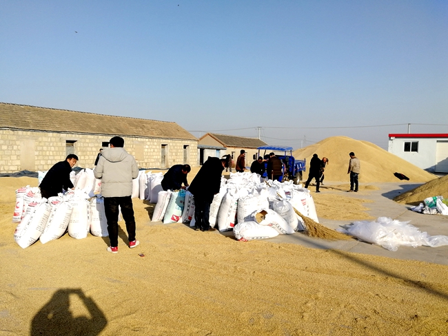勞動過程中,年輕黨員青春洋溢,老黨員老當(dāng)益壯,大家互相配合,淌汗了脫掉外套,甩開膀子加油干,推子、鏟子在握,塑料袋在手,有的將稻谷裝袋,有的翻曬受水稻谷,有的將裝袋稻谷運走。大家干的如火如荼,一點沒有停歇的意思,終于在天黑前將稻谷清理完畢。