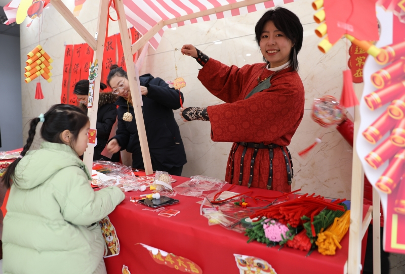 剪窗花、寫對聯(lián),是迎接新年必不可少的傳統(tǒng)習(xí)俗,承載了我們對新一年的美好期望。在傳統(tǒng)民俗區(qū),大家沉浸式體驗這些傳統(tǒng)習(xí)俗,有的揮毫潑墨,“寫春送?!?,有的剪紙寄情,剪出各種各樣象征生肖、團圓、吉祥的窗花,不一會兒,一幅幅滿載新年祝福的春聯(lián),一張張年味濃濃的窗花,就展現(xiàn)在大家面前。