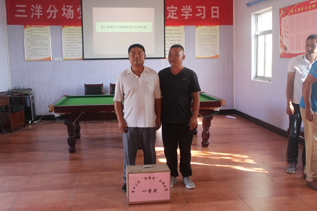 ? ? 26日的臺球比賽賽場設(shè)在三洋分場院內(nèi),賽場內(nèi)高懸大紅燈籠及條幅,為活動增添了喜慶的氣氛。