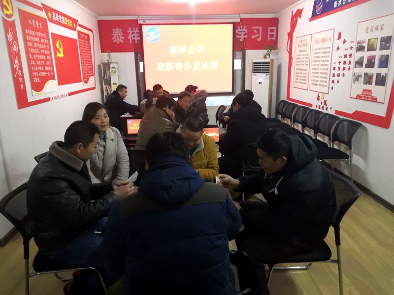 新春佳節(jié)將至,泰祥公司舉行 “ 迎新春 ” 撲克牌比賽。 公司全體員工參與本次迎新春撲克牌比賽,本次比賽既是一場聚會(huì),更是一場交流,不僅豐富了職工文化生活,更是增強(qiáng)了員工之間的凝聚力與向心力。 (王其霞)
