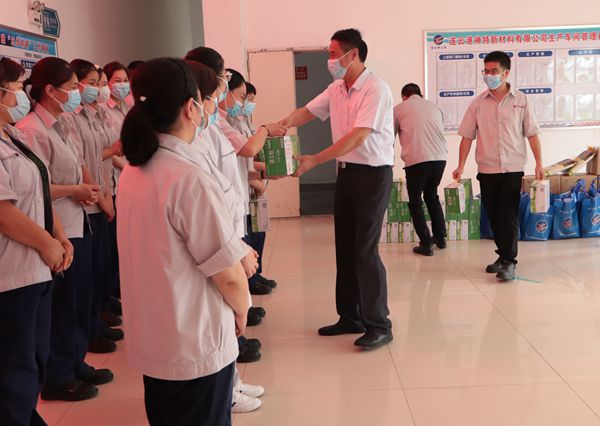 陳總向高溫下堅(jiān)守崗位的一線職工進(jìn)行慰問(wèn),細(xì)心叮囑要認(rèn)真做好防暑降溫和疫情防控工作,并送上綠豆、大米等防暑降溫慰問(wèn)品,為在炎炎夏日?qǐng)?jiān)守一線的職工送來(lái)一份清涼,帶來(lái)一片關(guān)懷。(神特宣)