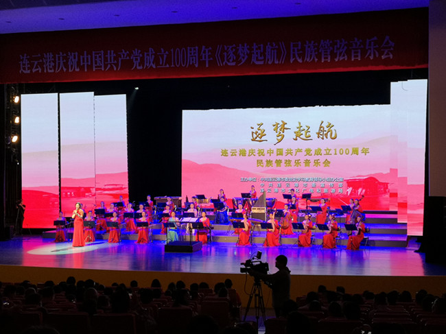 《逐夢(mèng)起航》連云港慶祝中國(guó)共產(chǎn)黨成立100周年大型民族管弦音樂會(huì),由中共連云港市委黨史學(xué)習(xí)教育領(lǐng)導(dǎo)小組辦公室、中共連云港市委宣傳部、連云港市文化廣電和旅游局主辦,連云港市演藝集團(tuán)承辦,演出單位是江蘇女子民族樂團(tuán)。音樂會(huì)分為《憶往昔崢嶸歲月》《舉旗幟山河復(fù)興》《再起航奮楫逐夢(mèng)》三個(gè)篇章,每個(gè)篇章以詩(shī)歌朗誦抒發(fā)時(shí)代情感,謳歌黨的光輝歷程。通過紅色旋律表達(dá)人民對(duì)黨的感恩之情,向黨的百年華誕獻(xiàn)禮。(神特宣)
