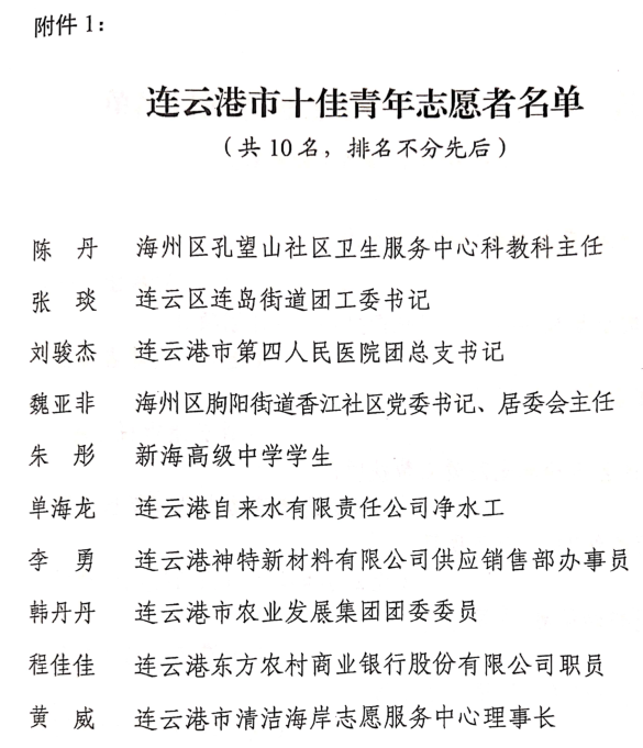 近日,公司員工李勇被共青團連云港市委、連云港市文明辦、連云港市志愿者協(xié)會授予“連云港市十佳青年志愿者”稱號。這是對其“無償獻(xiàn)血,大愛無疆”的肯定,也是對其一種激勵。