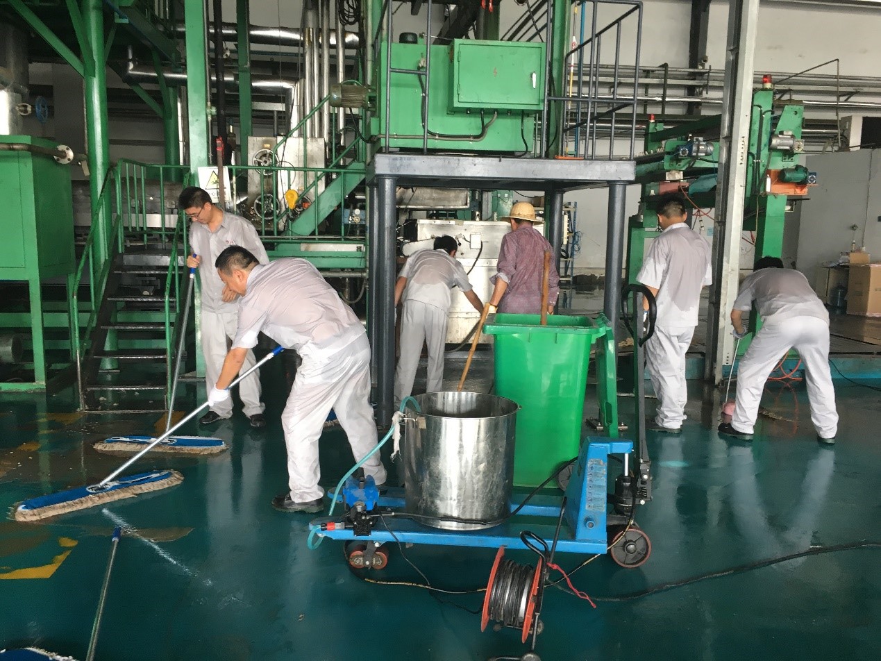為推進(jìn)創(chuàng)建全國文明城市、做好公司文明辦公和文明生產(chǎn)工作,7月24日下午,神特新材料員工積極響應(yīng)號召,到一期前紡生產(chǎn)車間展開“大掃除”活動。活動現(xiàn)場熱火朝天,大家齊心協(xié)力,勁往一處使,為創(chuàng)造一期前紡生產(chǎn)車間的美好環(huán)境,貢獻(xiàn)一份“微薄之力”。