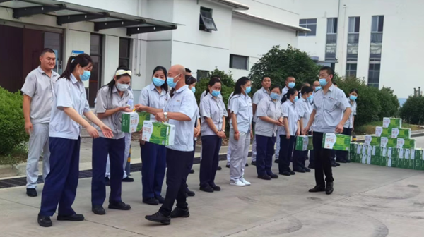 7月19日下午,公司黨支部書記、總經(jīng)理韓立新代表公司開展夏季送清涼活動(dòng),為全體職工送上組織的關(guān)懷和貼心準(zhǔn)備的牛奶等防暑降溫慰問品,給炎熱的夏季帶來(lái)一縷清風(fēng),進(jìn)一步激發(fā)了職工的工作熱情。(神特宣)