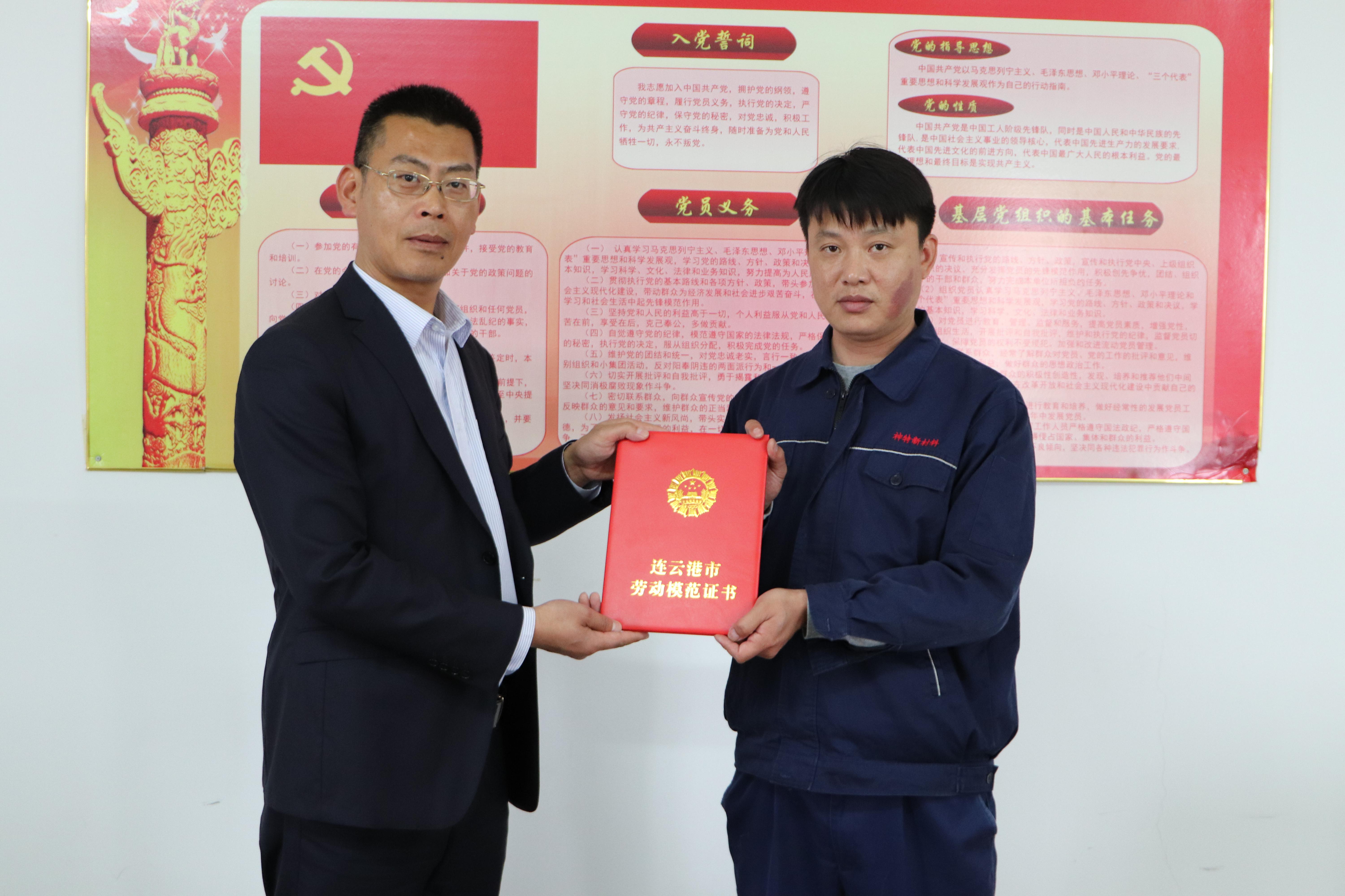 近日,我公司員工封安獲得連云港市勞動(dòng)模范殊榮。封安同志現(xiàn)為公司生產(chǎn)車間甲班大班長(zhǎng)。他,九載如一日,始終保持著執(zhí)著、敬業(yè)和精益求精的精神,在平凡的崗位上做出不平凡的業(yè)績(jī),詮釋了新時(shí)代工匠精神,展示了勞動(dòng)者模范風(fēng)采,成為一線工人的杰出代表。