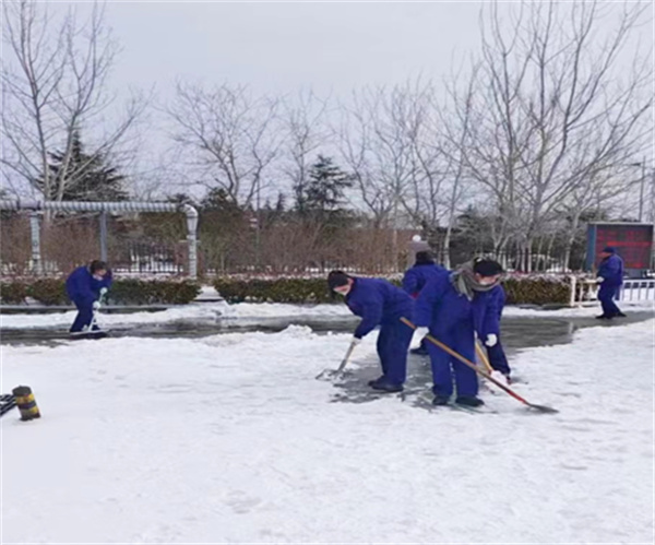 今天剛到公司,大家迅速換上工作服,在分管領導蔣總的帶領下,部門的同事們拿著鐵鍬,掃把等工具來到雪路上,男同志拿著鐵鎬刨,女同志拿鐵鍬鏟、掃把掃,忙忙碌碌干得熱火朝天。經過一個多小時的奮戰(zhàn),終于清掃了一條方便行人行走的路。