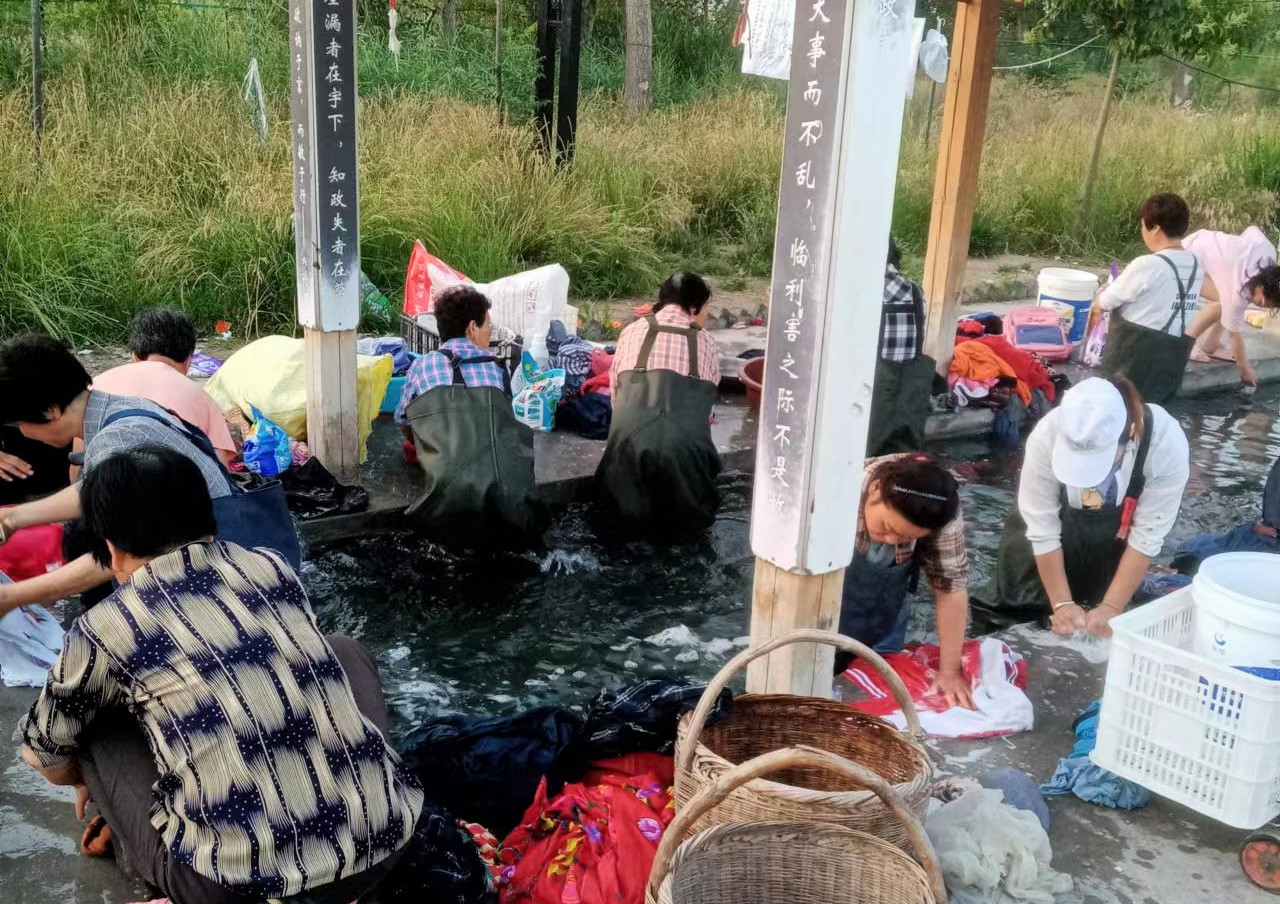 想到這些,我很好奇的查了查這個(gè)地方,原來(lái)洽川之前的洗衣溝渠被新規(guī)劃占用,他們重新選址建設(shè)了這個(gè)關(guān)雎洗衣文化長(zhǎng)廊。通過(guò)打一眼溫水自噴井,用青石堆砌一條寬3米、長(zhǎng)30余米的青石洗衣渠道,并且搭設(shè)了木結(jié)構(gòu)的文化長(zhǎng)廊,來(lái)保護(hù)當(dāng)?shù)靥赜械南匆挛幕?span>