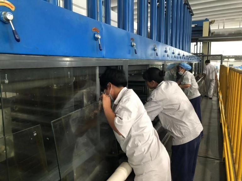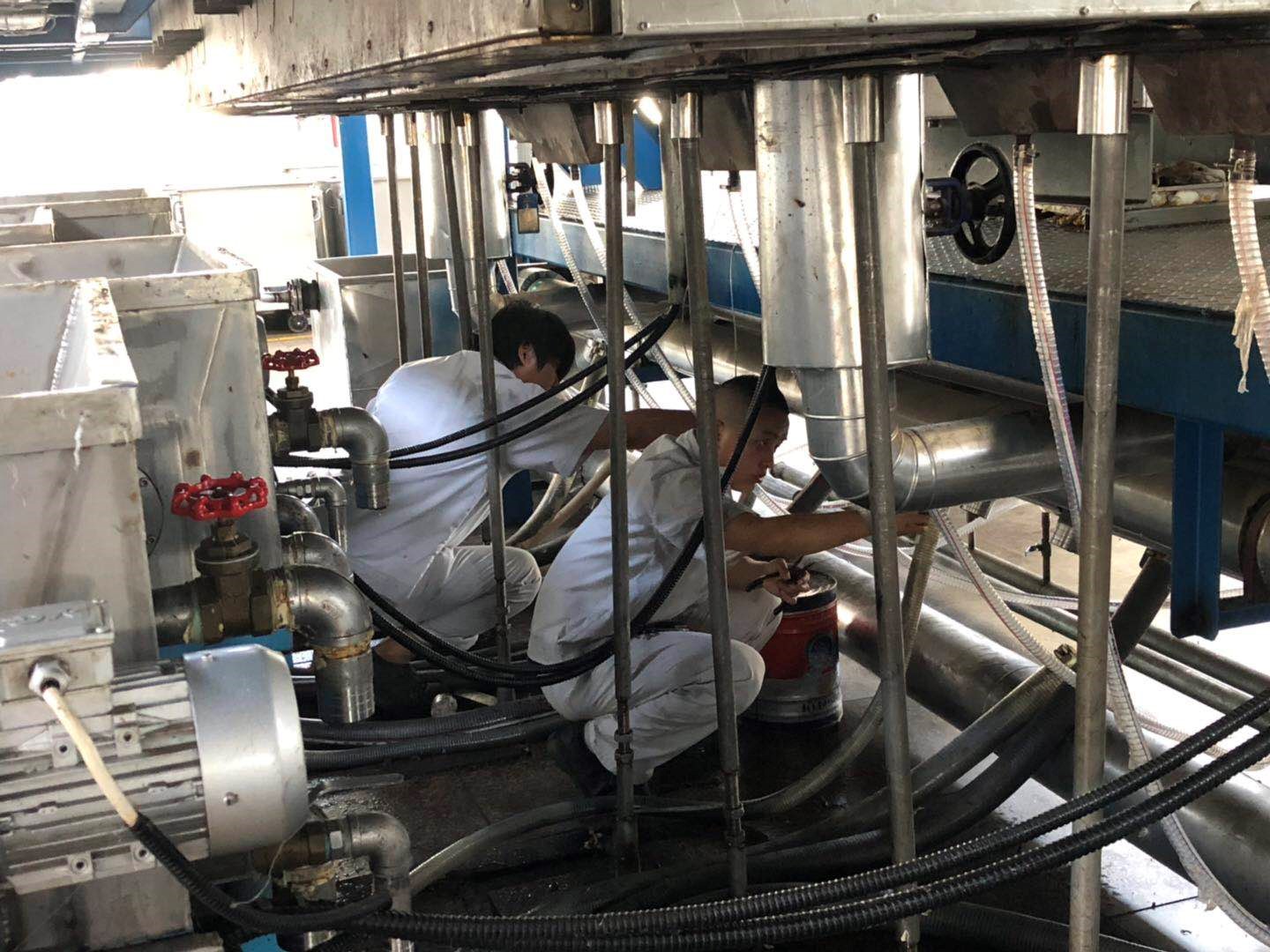 開展生產(chǎn)線設(shè)備清理工作。后紡員工無(wú)懼炎熱天氣,擼起袖子加油干,面臨萃取機(jī)內(nèi)部空間狹小難清理難題時(shí),身材精瘦的員工爭(zhēng)相進(jìn)入萃取機(jī)內(nèi)部進(jìn)行清理作業(yè),形成“愛(ài)企奉獻(xiàn)”工作氛圍。
