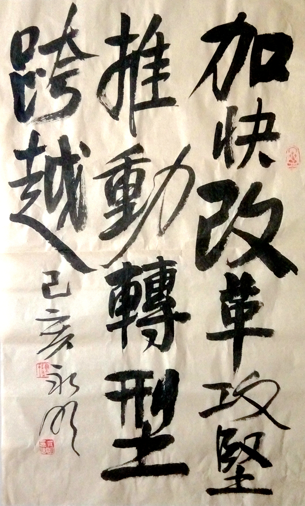 職工陳永明書法作品《加快改革攻堅(jiān),推動(dòng)轉(zhuǎn)型跨越》