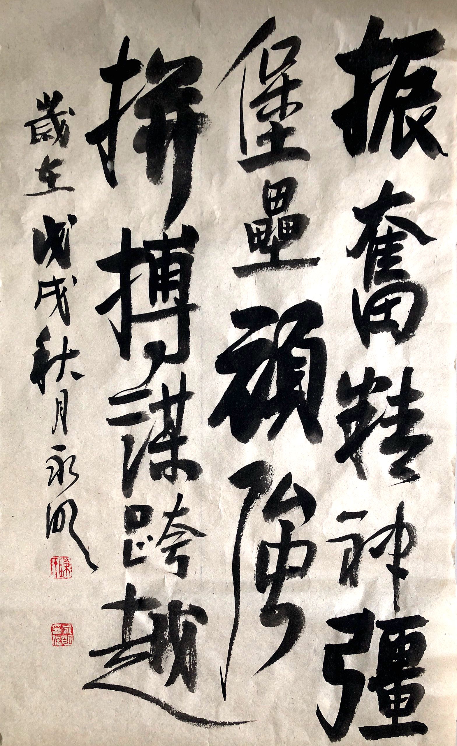 職工陳永明書(shū)法作品《振奮精神強(qiáng)堡壘,頑強(qiáng)拼搏謀跨越》
