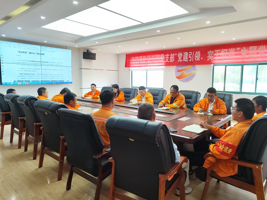 ▲黨支部書記范曉寶主持主題黨日活動(dòng)