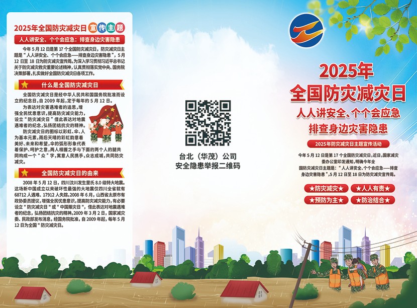 為進(jìn)一步提升防災(zāi)減災(zāi)意識和應(yīng)急避險(xiǎn)自救能力,筑牢安全防線,5月12日下午,臺北(華茂)公司防災(zāi)減災(zāi)宣傳周活動(dòng)啟動(dòng)儀式在環(huán)保裝備產(chǎn)業(yè)園五樓會(huì)議室舉辦。各基層單位分管安全負(fù)責(zé)人、現(xiàn)場安全員、班組長及安環(huán)部人員參加活動(dòng)。
