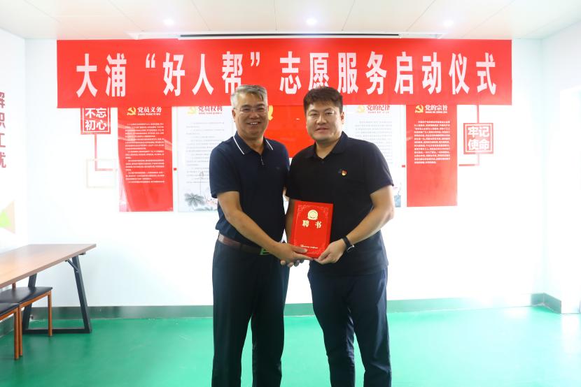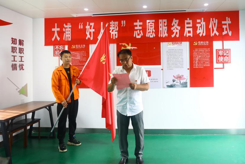 公司黨委書記、董事長王德志為“中國好人”常皓同志頒發(fā)了聘書,聘請常皓同志擔(dān)任“好人幫”志愿服務(wù)隊名譽輔導(dǎo)員。黨委副書記、工會主席、副總經(jīng)理傅健向“好人幫”志愿服務(wù)隊進行了授旗,大浦分公司負責(zé)人代表“好人幫”志愿服務(wù)隊宣讀了《爭當(dāng)好人倡議書》,三名“好人幫”志愿服務(wù)隊成員與幫扶對象結(jié)對并簽訂了幫扶協(xié)議書。