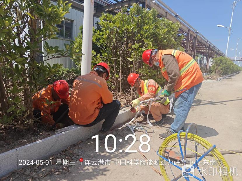 在中科院的路燈電纜施工現(xiàn)場,2000來米的電纜穿管工程時間緊任務(wù)重!舊路燈基座電纜孔全被泥土堵塞,穿線相當(dāng)困難!在“老黃?!眴桃猿蓭ьI(lǐng)下,市政班組全員在崗,集思廣益克服困難。大家顧不上烈日當(dāng)頭、蚊蟲叮咬,合起號子加油干,確保兩天拿下全部工程量。