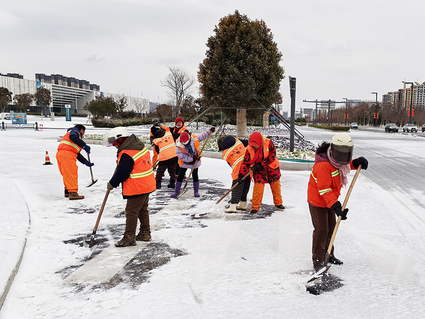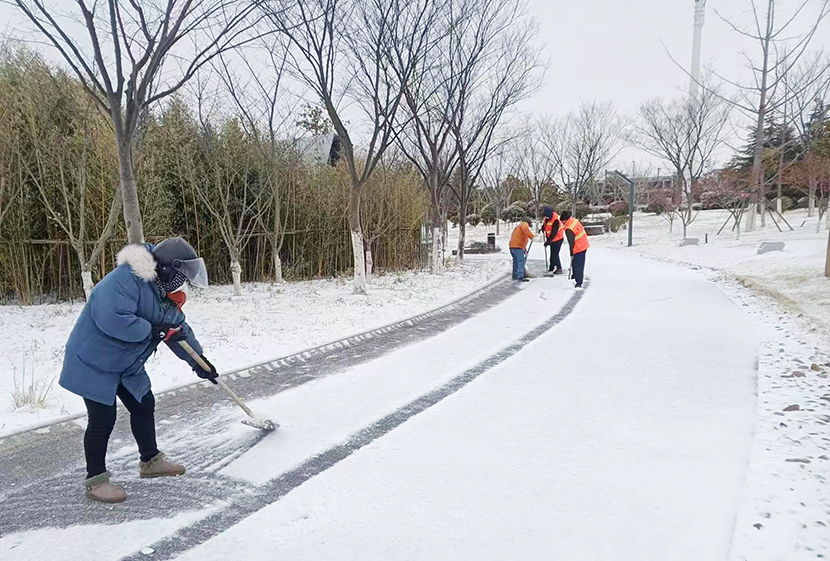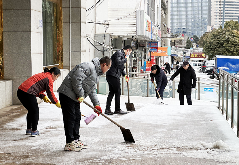 ? ? 機(jī)關(guān)管理人員全員出動,與東園社區(qū)聯(lián)動,掃除街邊、道路、小區(qū)、商鋪等門前積雪,確保周邊居民出行安全。