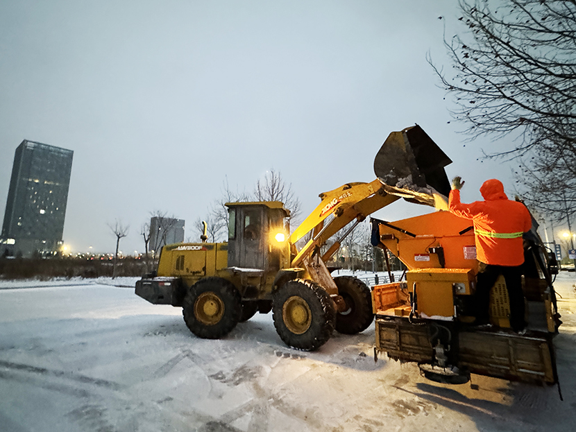 ? ? 此次掃雪除冰行動,采用人機(jī)結(jié)合方式,調(diào)派鏟雪車、裝載機(jī)等機(jī)械設(shè)備,對東方大道、黃海大道、花果山大道、242省道等主要干道人行便道、交叉路口,新海連大廈、火車站東站等重要地段的路面冰雪進(jìn)行突擊清理;對各條干道的橋面及馬山立交橋、新光路下穿立交等坡度路面鋪灑氯化鈣除雪劑融化冰雪。