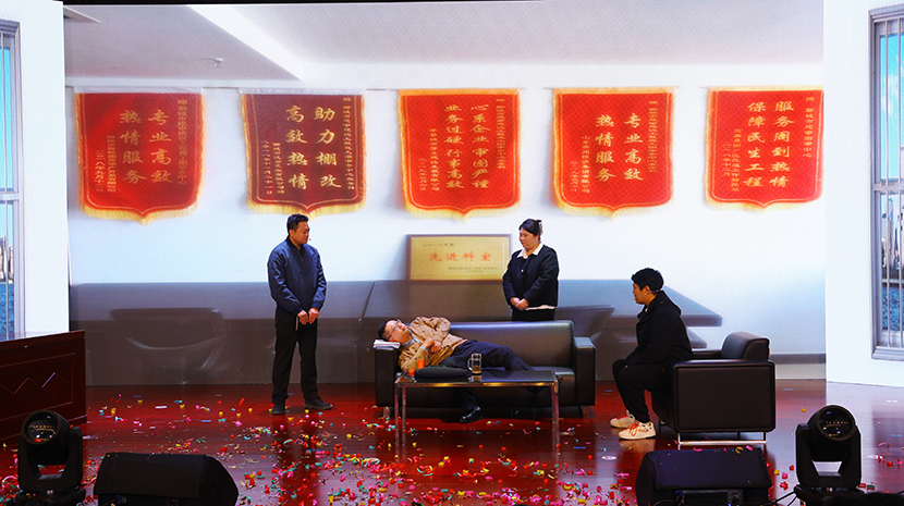 演出在舞蹈《祖國(guó)你好》中拉開(kāi)序幕,隨后,一個(gè)個(gè)歡快、喜慶、祥和的文藝作品相繼上演。這其中,既有充分展現(xiàn)臺(tái)北發(fā)展力量的情景劇《我們是臺(tái)北力量》《南泥灣暢想》,也有大氣磅礴的男女對(duì)唱《不忘初心》和小合唱《眾人劃槳開(kāi)大船》,有草原氣息的笛子獨(dú)奏《牧民新歌》,諷刺當(dāng)下“躺平式”干部的廉潔作風(fēng)小品《坑》,展現(xiàn)公司活力的男團(tuán)《舞蹈:串燒》《山丹丹花開(kāi)紅艷艷》,奇特、神秘的魔術(shù)表演,一腔情懷的京劇《沙家浜-唱段軍民魚(yú)水情》……最后,在機(jī)關(guān)全體人員帶來(lái)舞蹈《相親相愛(ài)的一家人》中落幕,高潮迭起、精彩不斷,得到廣泛好評(píng)。
