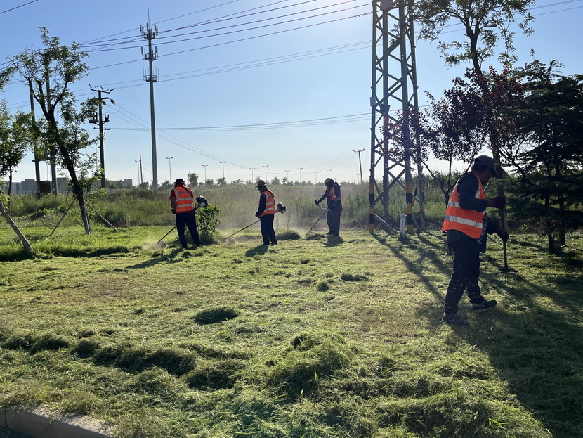 斗酷暑 陽(yáng)光很烈,他們很美。滾滾熱浪,高溫“烤”驗(yàn)。“炎”值爆表,室外溫度38℃,地表溫度飆升到50℃,城市像一個(gè)巨大的“蒸籠”,空調(diào)房里的人們望門止步。但是,有一群與太陽(yáng)肩并肩不服“暑”的鐵“汗”子,他們用黝黑皮膚擦亮奮斗的底色。你可以在小區(qū)里看到他們頭頂驕陽(yáng)找路徑、穿網(wǎng)線、做網(wǎng)絡(luò);可以在東方大道上看到他們冒著紫外線的灼烤,忙著栽種草苗、除草澆水;可以在大浦路上看到他們腳踩滾燙瀝青,忙著轉(zhuǎn)移交通桿;可以在花果山大道上看到他們汗流浹背,背著割灌機(jī)忙著打草。一件件浸透汗?jié)n的工裝,一句句樸實(shí)無(wú)華的話語(yǔ),一份份汗水淋漓的擔(dān)當(dāng)……翔立每位員工都在發(fā)揚(yáng)“特別能吃苦、特別能戰(zhàn)斗、特別能奉獻(xiàn)”的鐵軍精神,攥緊拳頭,埋頭苦干。