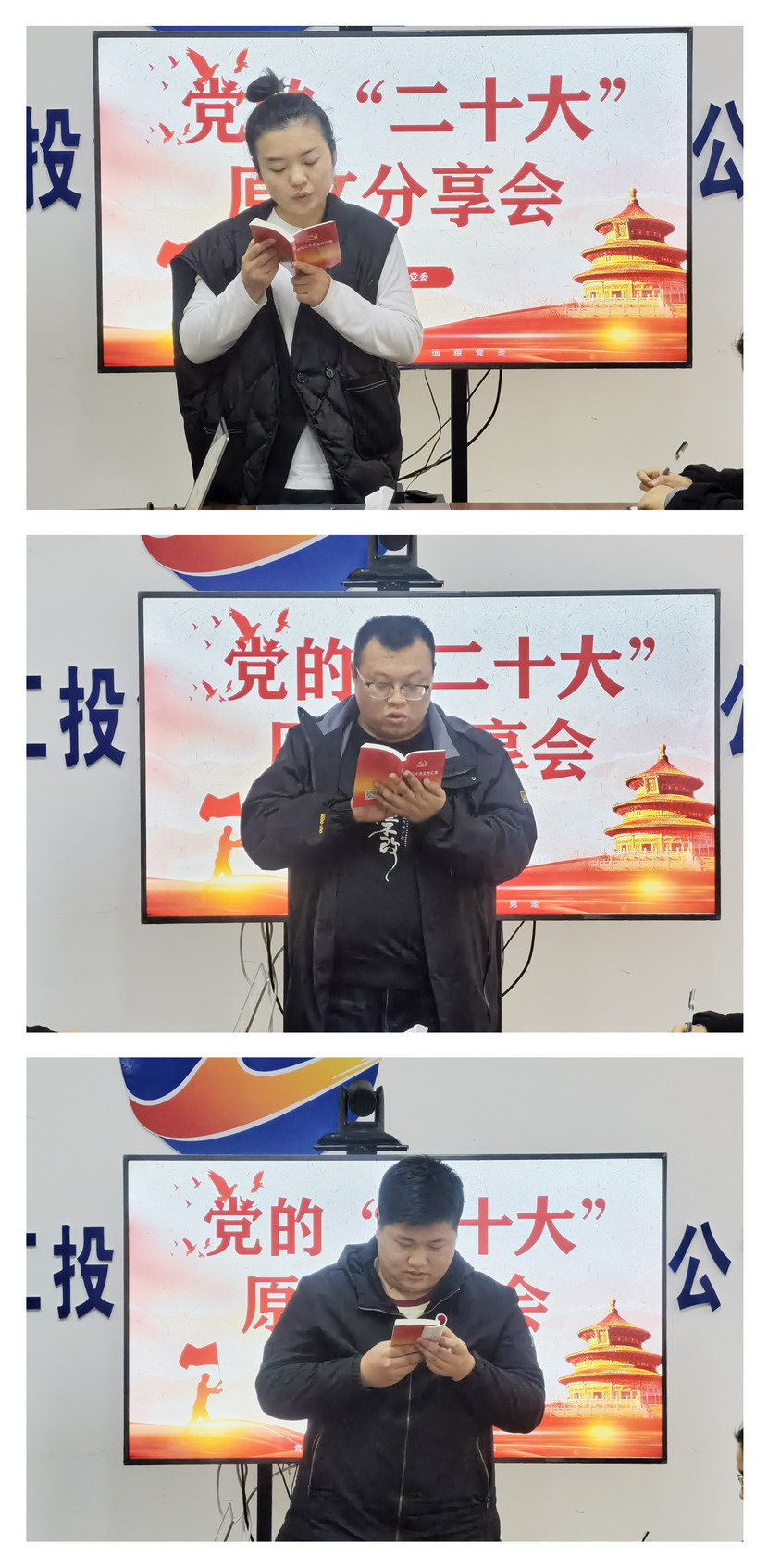 ? ? 11月9日下午,臺北投資公司黨委開展“固定學習日”活動,專題學習黨的“二十大”精神,分享交流學習感悟。