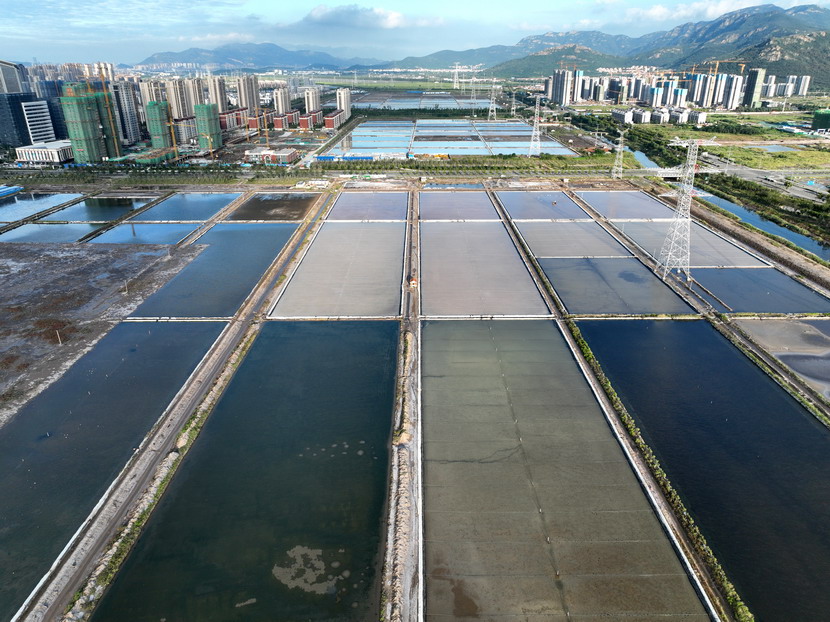 921日,從空中俯瞰海州灣公司的鹽田,猶如一塊塊調(diào)色板。