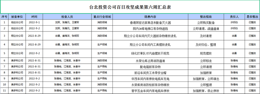 臺(tái)北投資公司百日攻堅(jiān)成果第六周匯總表