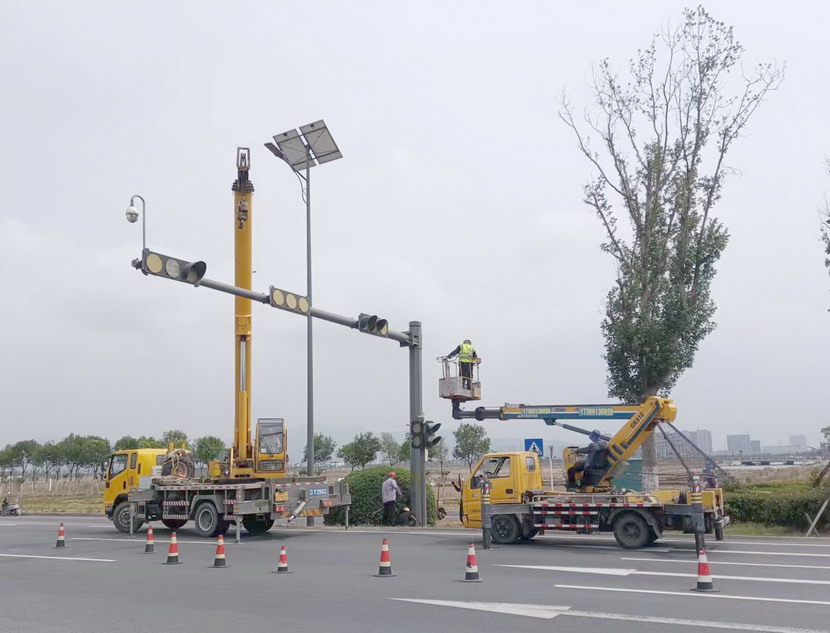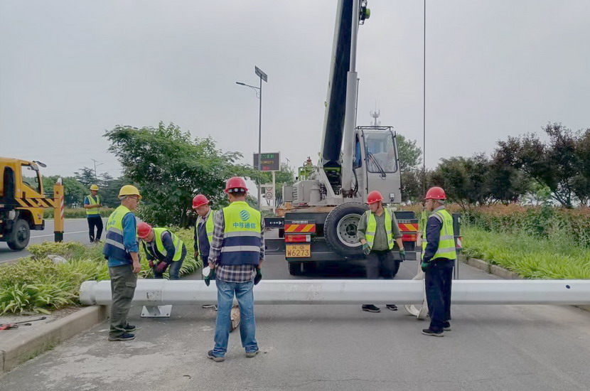 隨后,筆者一行,頂著烈日,驅(qū)車前往翔立分公司市政工程現(xiàn)場,在封閉的道路內(nèi),翔立公司一群黃馬甲戰(zhàn)士,正頂著烈日在緊張的進行交通監(jiān)控探頭安裝工作。據(jù)了解他們也是5點多種就到崗位上來了。經(jīng)理喬以成帶著兩名員工站在高高的升降機上,鉗子、扳手、鏍絲刀,各種工具在他們手里輪番操作,汗水已將其工作服的前胸后背浸透。好不容易等到他們安裝完一組探頭下來,我們一邊遞水,一邊采訪,老喬擰開瓶蓋,一口氣喝下半瓶,這才回答我們的問題:“不能不拼啊,我們離盈利還有不小的缺口,現(xiàn)在全公司、全集團都在解放思想提質(zhì)增效,不干、不努力哪里來的增效啊!”
