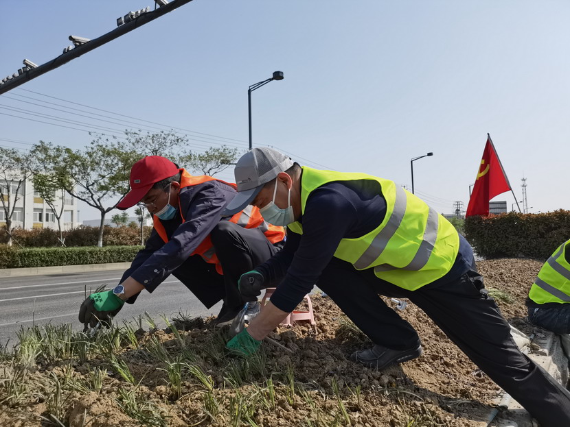 海州灣黨支部組織黨員、職工20余人,從4月29日開始,全力支援公司綠化工程,黨員們自帶工具、自制工具,發(fā)揚一不怕苦、二不怕累的戰(zhàn)斗激情,每天工作超過10個小時,直到帶班組長強制命令還要完成最后一塊責任區(qū)才罷手。