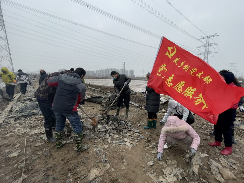 寒風中,志愿者們忙碌在鹽灘上,充分發(fā)揚不怕累、不怕臟的精神,對附近區(qū)域的垃圾、雜物進行清理。經(jīng)過一個下午的辛勤勞動,共清理廢棄的塑布、木板等雜物十余車,用行動和汗水,扮靚了鹽場人的家園。