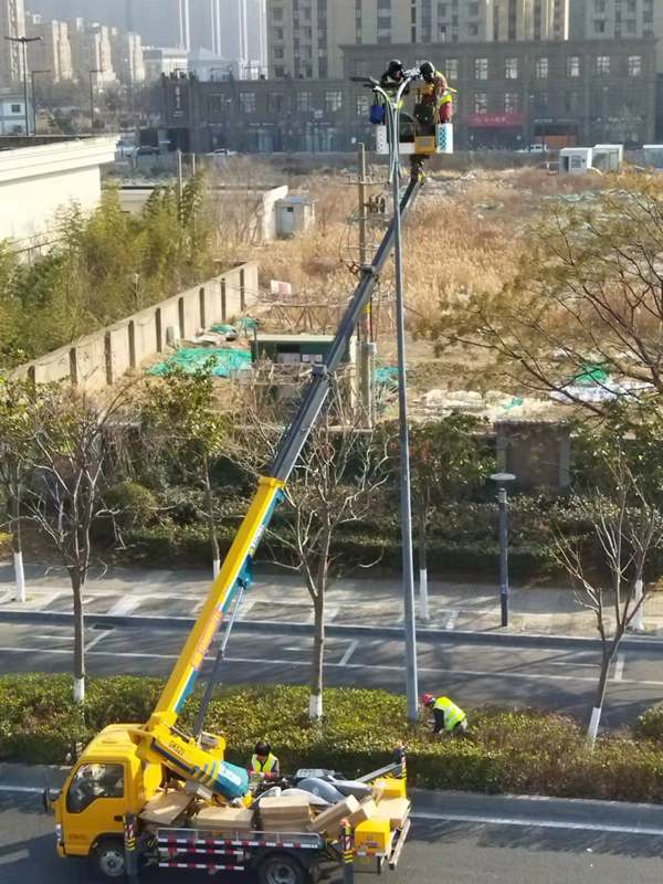 ?該項(xiàng)城市照明提升工程工程量大(約6500套路燈),工期緊。為了趕時(shí)間進(jìn)度,翔立“鐵軍”們由12月27開(kāi)始施工,日以繼夜、馬不停蹄的連續(xù)奮戰(zhàn)在工程一線,沒(méi)有一個(gè)人掉隊(duì),沒(méi)人喊苦叫累,個(gè)個(gè)都像鉚足了勁的“小牯?!?。肩帶《安全員》紅袖章的工程負(fù)責(zé)人喬以成騎著電瓶車(chē)不時(shí)地在海寧大道上來(lái)回穿梭著,“王師傅,高空作業(yè)車(chē)四條支撐臂必須支撐平穩(wěn)牢固后再提升哦”,“段青春,把前方施工的警示牌擺在車(chē)輛后面,還有道路安全錐桶一定要將作業(yè)區(qū)域圍起來(lái),與后面來(lái)車(chē)方向保持安全距離。”在市區(qū)人流密集的道路上同時(shí)有5臺(tái)登高作業(yè)車(chē)分區(qū)域高空作業(yè)的情況下,他最放心不下,畢竟是高空作業(yè)!為了防止高空墜落,登高施工操作人員全部按要求規(guī)范佩戴安全帶、系好安全繩、絕緣鞋、防寒安全帽、警示馬甲一應(yīng)俱全,武裝整齊。為防高空落物,作業(yè)車(chē)吊籃內(nèi)使用的工具全部系上“失手繩”,安全施工是必要的前提,有措施,有辦法,畢竟千條萬(wàn)條,安全才是第一條!