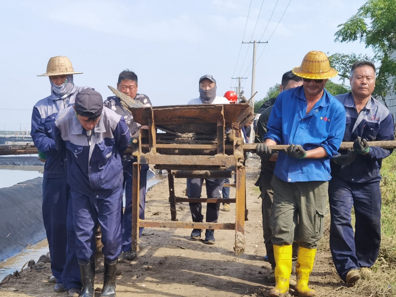 厲兵秣馬,鏖戰(zhàn)秋扒鹽。“同志們,這將是我們臺北地區(qū)1300年鹽業(yè)史上最后,也是時間最緊急、任務(wù)最繁重的一次秋扒鹽了”正是因為使命在肩,我們更要勇往直前。公司全體黨員干部爭分奪秒扒鹽、竭盡全力制鹵,奮戰(zhàn)100天,全力沖刺“開新局、奪首勝”目標(biāo)任務(wù)。連云港堿廠關(guān)停在即,鹽鈣聯(lián)產(chǎn)項目終結(jié),原鹽搶收進入到了大決戰(zhàn)時刻。為此,公司上下,從黨委班子到普通辦事員,從直屬單位到公司機關(guān),全部動員起來,9月28日召開了戰(zhàn)前動員大會并進行秋扒崗前培訓(xùn)。10月2日,天時地利人和,夜里9時10分,隨著機器一聲轟鳴,扒鹽機組輸鹽大架銀瀑飛濺,大八組、西灘雙向聯(lián)動,人工扒鹽、機械扒鹽齊頭并進。公司領(lǐng)導(dǎo)與廣大職工想在一起、干在一起,上下齊心、爭分奪秒,擼起袖子、甩開膀子,在鹽池間盡情地揮灑著汗水,確保勞動成果顆粒歸倉,誓奪原鹽收官戰(zhàn)全勝。截止6日晚,公司 排放鈣液6000方,扒鹽3000余噸。