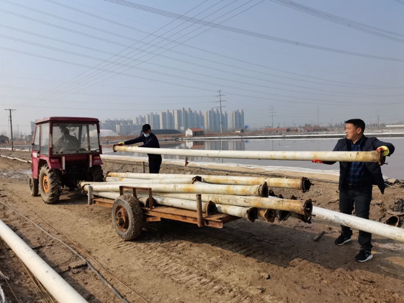 東灘現(xiàn)有長鹽格塊10塊,共計(jì)600公畝,預(yù)計(jì)出鹽量6000噸。為了在征收前,實(shí)現(xiàn)公司利益最大化,鹽池里不留一粒原鹽,海州灣公司多次召開生產(chǎn)骨干會議,研究部署,合理安排扒鹽時間,決定先人工扒東灘二班4塊鹽池,余下6塊鹽池利用春季有利天時繼續(xù)長鹽,在土地征收前的最后一個月,突擊搶扒,做到顆粒歸倉。本次東灘預(yù)計(jì)扒鹽時長一周,出鹽量2500噸。