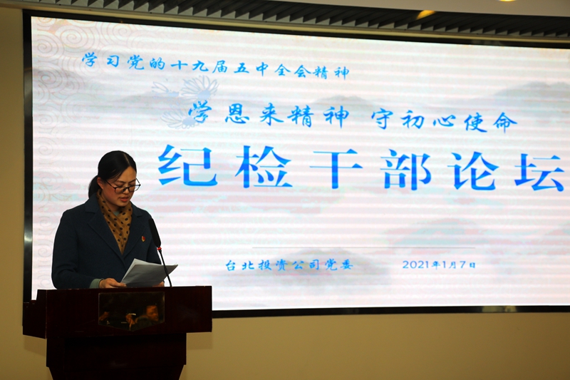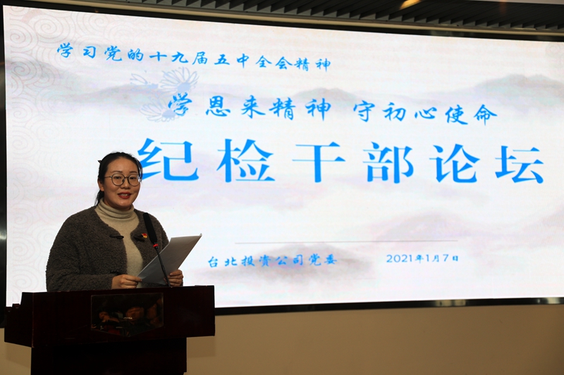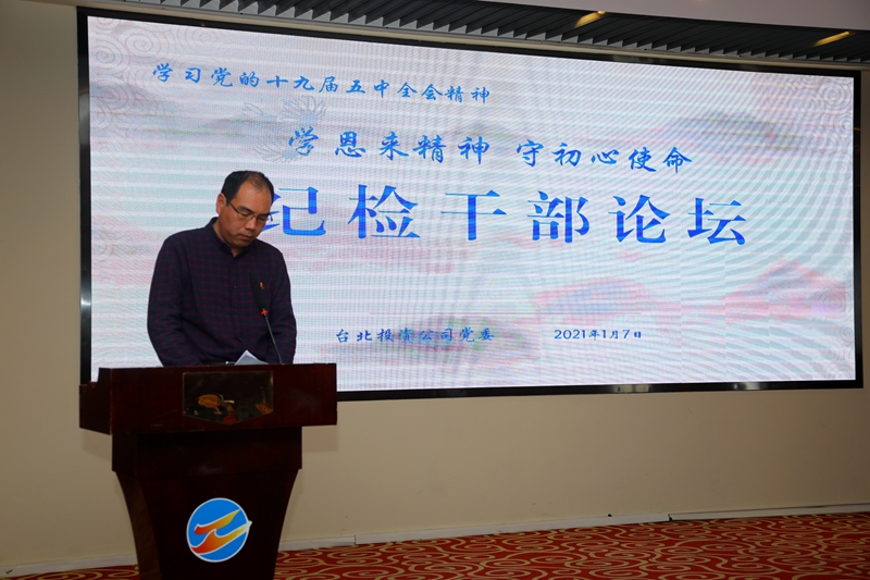 “感受偉人風(fēng)范,踐行初心使命……”從臺(tái)北投資公司十樓會(huì)議室里傳來鏗鏘有力的演講聲。為深入推進(jìn)“學(xué)恩來精神、守初心使命”專題教育活動(dòng),鍛造忠誠干凈擔(dān)當(dāng)?shù)?/span>紀(jì)檢干部隊(duì)伍,1月7日下午,公司舉辦紀(jì)檢干部專題大講堂。公司領(lǐng)導(dǎo)班子成員,各單位、部門中層副職以上管理人員參加了活動(dòng)。