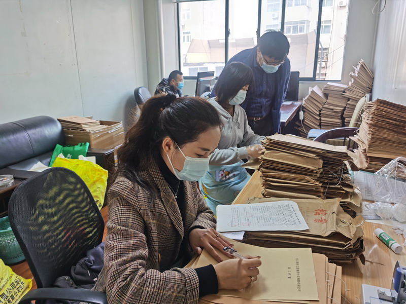在檔案整理現(xiàn)場,大家通力配合,有的整理檔案、有的輸入電腦、有的仔細核對,加班加點做好退休人員基本信息和檔案整理、登記造冊等工作,有條不紊、熱火朝天。工作人員層層壓實責任,細化任務分工,編制移交清單,對各個時期的人事檔案材料及時進行梳理、鑒別、整理、裝訂,確保內容真實準確、材料齊全完整。此次涉及移交檔案1580卷,已經完成1300余卷,其余部分將于近期陸續(xù)完成。