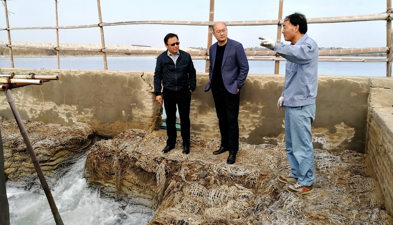 ▲柳總、卞助理在二號碴場考察氨堿上清液存量
