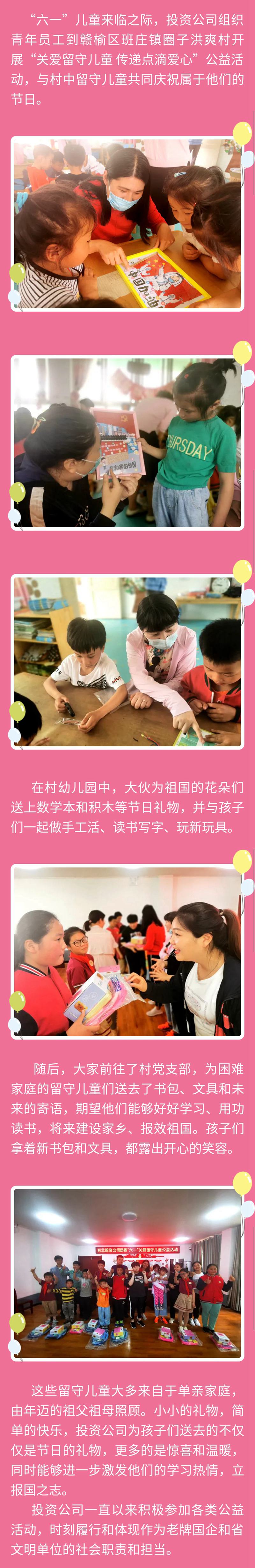 投資公司開展“關(guān)愛(ài)留守兒童 傳遞點(diǎn)滴愛(ài)心”公益活動(dòng)