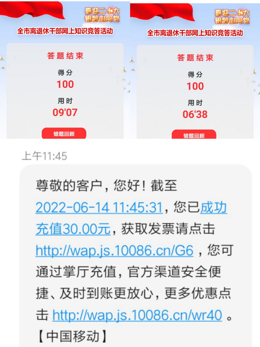 猴嘴辦事處對此次答題活動高度重視,動員猴嘴辦事處人員積極參與答題活動,并引導(dǎo)鼓勵離休老干部積極參加答題活動。經(jīng)過七天的連續(xù)網(wǎng)上奮戰(zhàn)答題,獲獎評選結(jié)果于6月13日揭曉,猴嘴辦事處張克娟同志喜進(jìn)第一周獲獎人員名單,并且已收到了30元的話費充值獎勵。獲獎本人表示,將把此次競答獎勵轉(zhuǎn)化為學(xué)習(xí)的再生動力,再接再厲,以學(xué)促行,推動服務(wù)能力再提升。