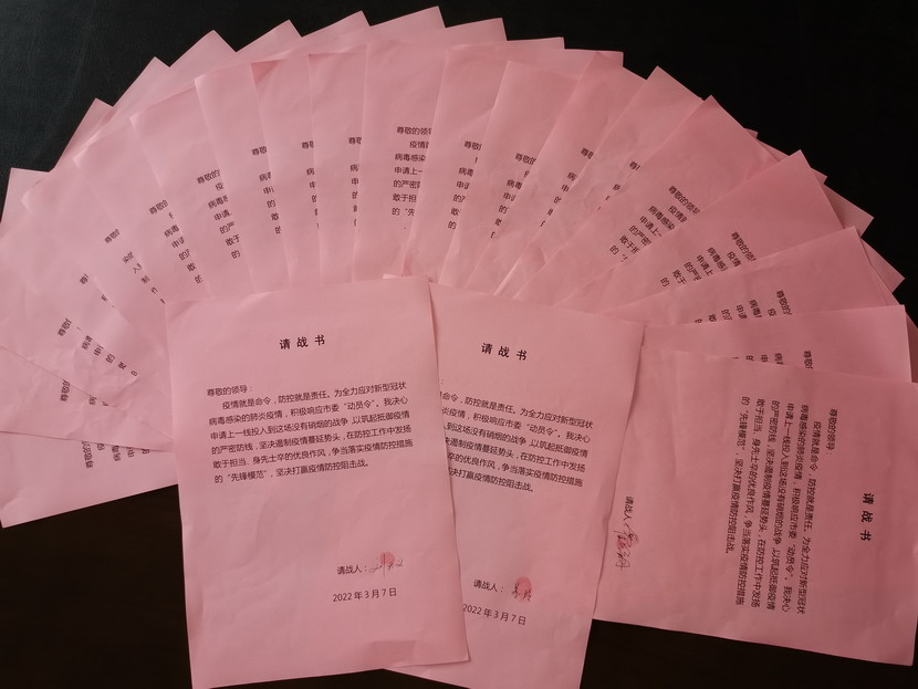 在黨員帶動下,群眾也紛紛行動起來。“還有我們,我們雖然不是黨員,但是我們也想為抗疫貢獻自己一份力量......”優(yōu)秀職工沈秀成、邱榮濱、韓永剛、占恒春如此說道?!拔覜Q心申請上一線投入到這場沒有硝煙的戰(zhàn)爭,以筑起抵御疫情的嚴密防線,聽從組織的統(tǒng)一指揮與安排,不計得失,無論生死,絕不退縮......”,42名志愿者在請戰(zhàn)書上簽上自己的名字并按下手印,紛紛表示,隨時準備著黨中央的召喚,祖國的召喚,一聲令下,立即奔赴抗戰(zhàn)一線。