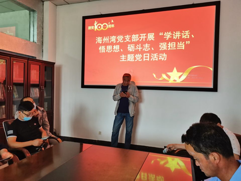 為深入學(xué)習(xí)貫徹習(xí)近平總書記“七一”重要講話精神,進(jìn)一步堅(jiān)定理想信念,引導(dǎo)廣大黨員不忘初心、爭(zhēng)創(chuàng)一流,7月27日上午,海州灣黨支部開展“學(xué)講話、悟思想、礪斗志、強(qiáng)擔(dān)當(dāng)”主題黨日活動(dòng)。