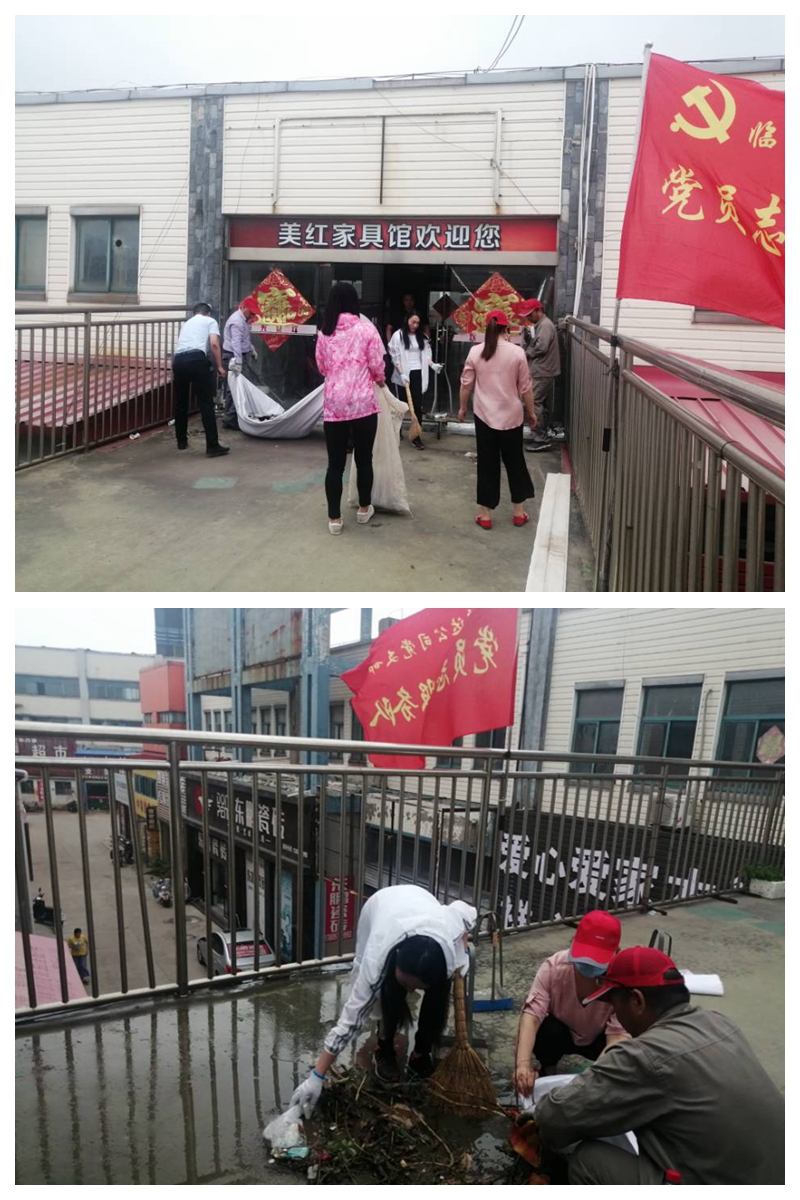 圍繞臨達(dá)公司資產(chǎn)經(jīng)營業(yè)務(wù),7月21日,臨達(dá)黨支部組織開展“黨員奉獻(xiàn)日”活動(dòng),志愿服務(wù)隊(duì)到光伸家具市場,對過道、門前的環(huán)境衛(wèi)生進(jìn)行了清掃。通過活動(dòng)開展,與商戶對營造良好經(jīng)營氛圍形成共識(shí),共同打造干凈、整潔、舒適的營商環(huán)境,提升臨達(dá)公司形象,促進(jìn)公司與商戶的和諧關(guān)系,形成人人參與、齊抓共管的良好氛圍。