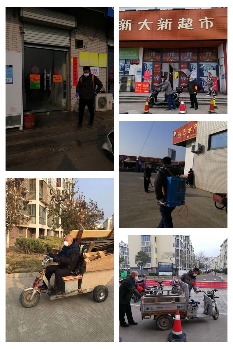 年初三開始,和值班領(lǐng)導(dǎo)站在鄰里中心入口處時刻提醒業(yè)主外出戴口罩,做了很多“不近人情”的事,常常不被理解,甚至于還要受人責罵。對于這些他從不埋怨,本著初心只為從源頭上遏制疫情把好關(guān)。小區(qū)內(nèi)全面實施嚴格消毒管理措施,韓加柱、盧廷高二人主動承擔了鄰里中心的消毒水噴灑工作。樓道里、垃圾桶旁,不放過任何死角。沒有N95口罩,來不及經(jīng)專業(yè)的知識培訓(xùn)。近日來共計噴藥消毒近萬多平方,節(jié)日期間清掃垃圾,消毒垃圾桶他們用默默的行動為廣大業(yè)主筑起一道堅固的生命防線。
