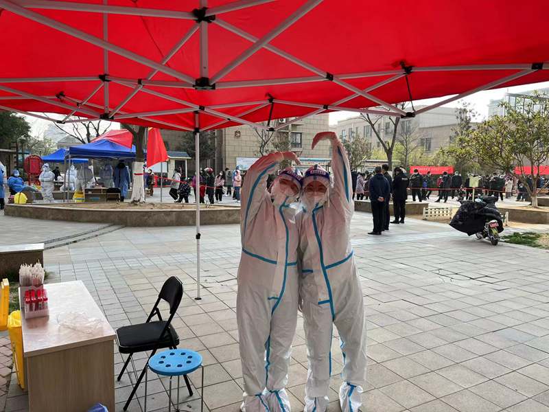 9:00 ?所有人員就位,我也開始了我的“大白”體驗課,工作就是核對身份證信息與二維碼一致,進行拍照采樣。身穿防護服,站到崗位上,面前就是群眾,心中滿腔責(zé)任感,使命感。
