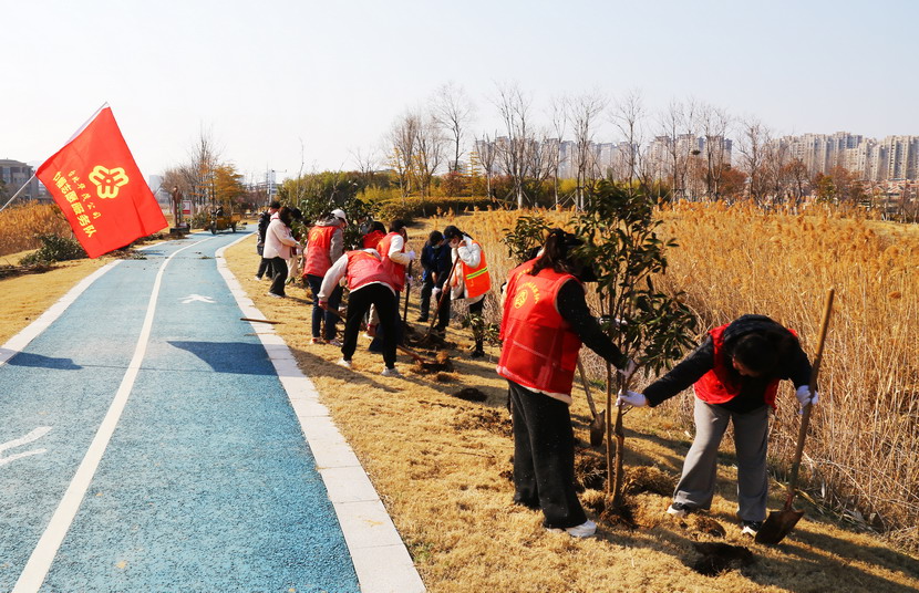 ? ? 都說女人能頂半邊天,不僅在工作上獨當一面,掄起鐵锨來也有“女漢子”的風采。在植樹活動中,女職工們齊心協(xié)力,有的搬運樹苗、有的挖坑育樹、有的培土澆水,大大小小百余棵樹木很快就玉立在昌圩湖公園健康小路兩側(cè),為昌圩湖公園增添了一份綠意。